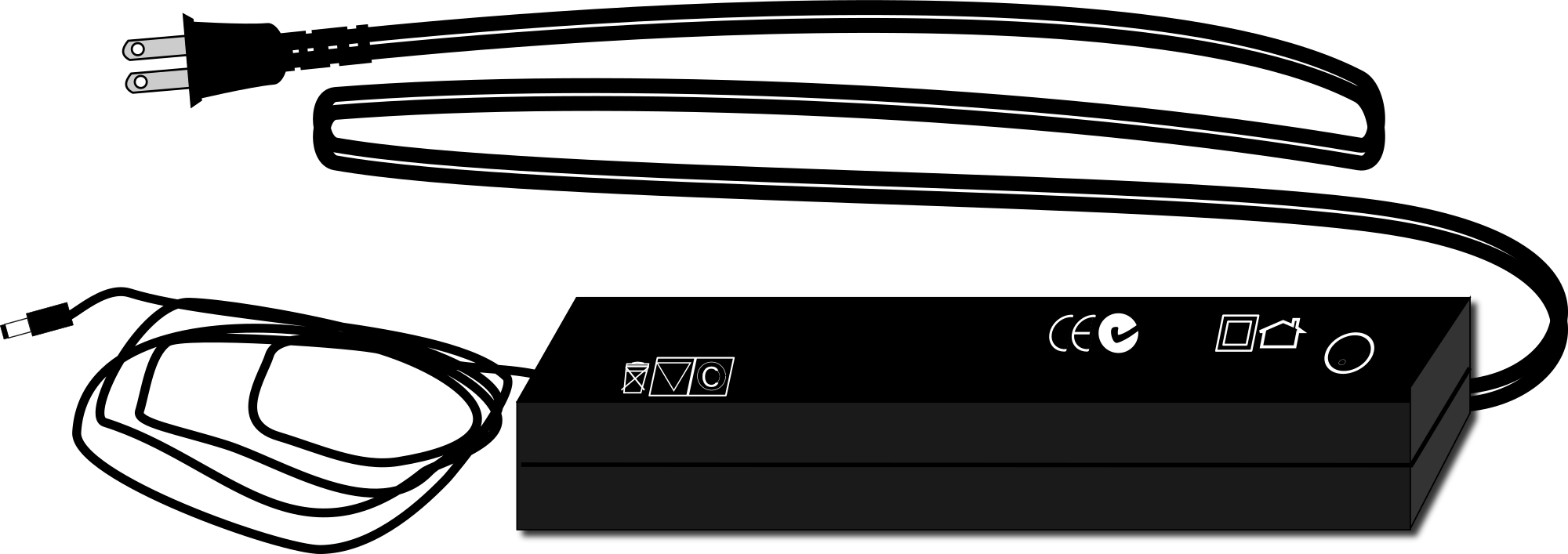 Power supply for a laptop, converting AC (mains) to DC voltage.