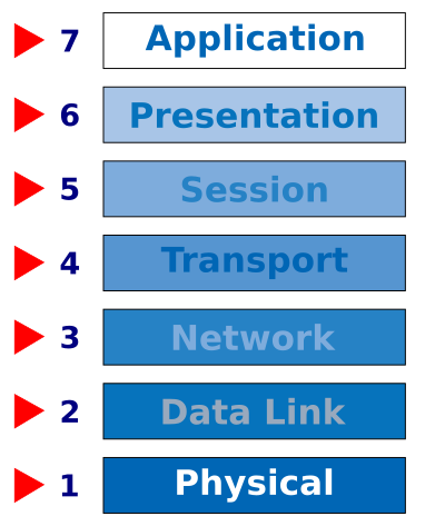 OSI network 7 layer model. Edit and remove extra triangles to point to a specific layer.