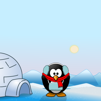 - Tux animal antarctica cold earlap earmuff freeze ice icy igloo muff penguin pole scarf snow south pole winter