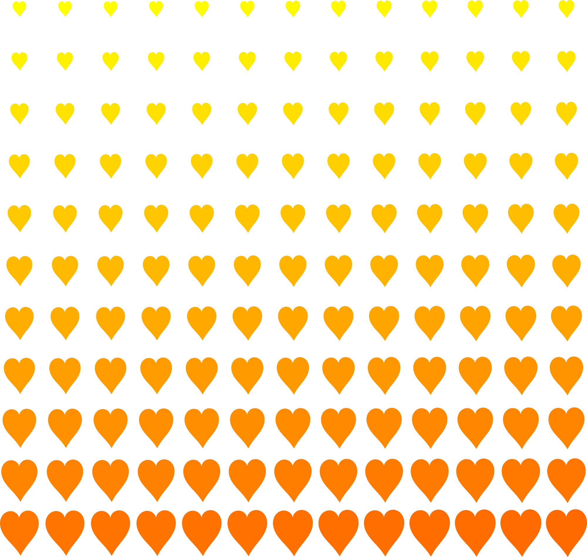 Grid of heart symbols with increasing size, top to bottom