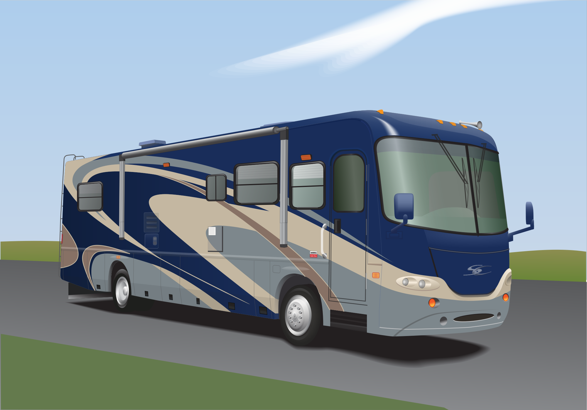 A rendering of the 2005 Coachmen Cross Country motorhome, a diesel pusher.