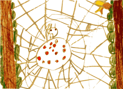 Kindergarten Art Spider is a crayon drawing by a preschool child, having fun in a church kindergarten. Art from a child's perspective.