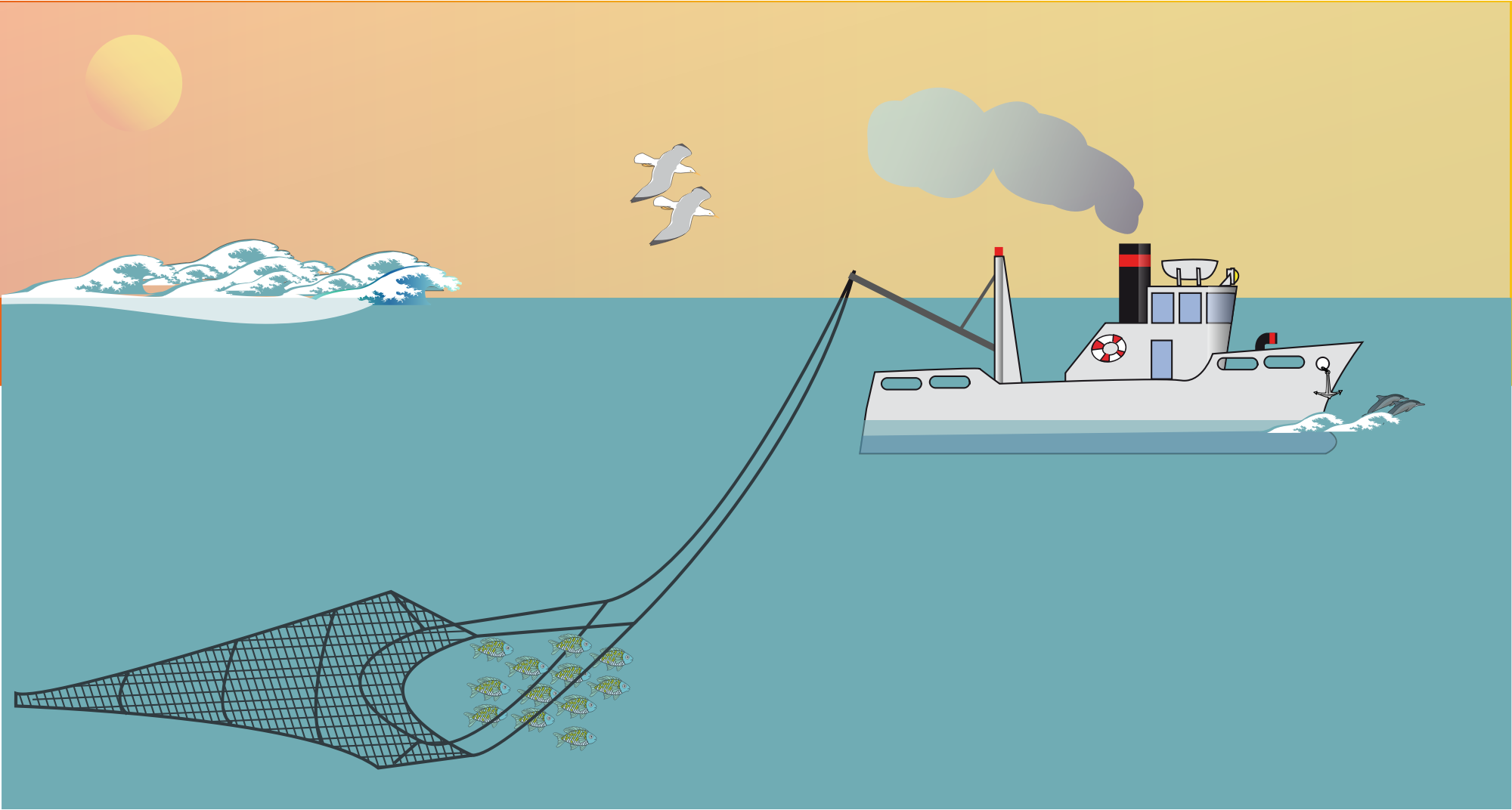 A fishing boat at sea.