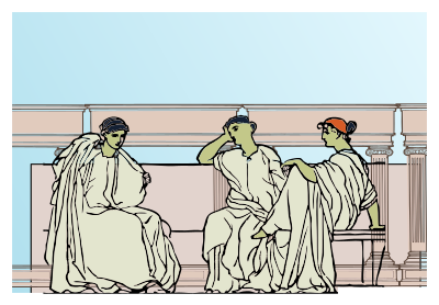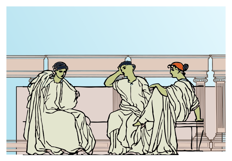 Three women in flowing robes sit in from of Roman arches. It's a remix of http://openclipart.org/detail/5970/roman-relief-3-by-johnny_automatic2 and http://openclipart.org/detail/172127/simple-roman-frame-by-j4p4n-172127