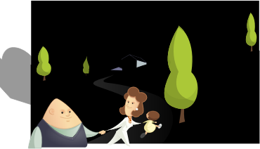 - cartoon child clouds family father house kid landscape man morning mother people trees woman