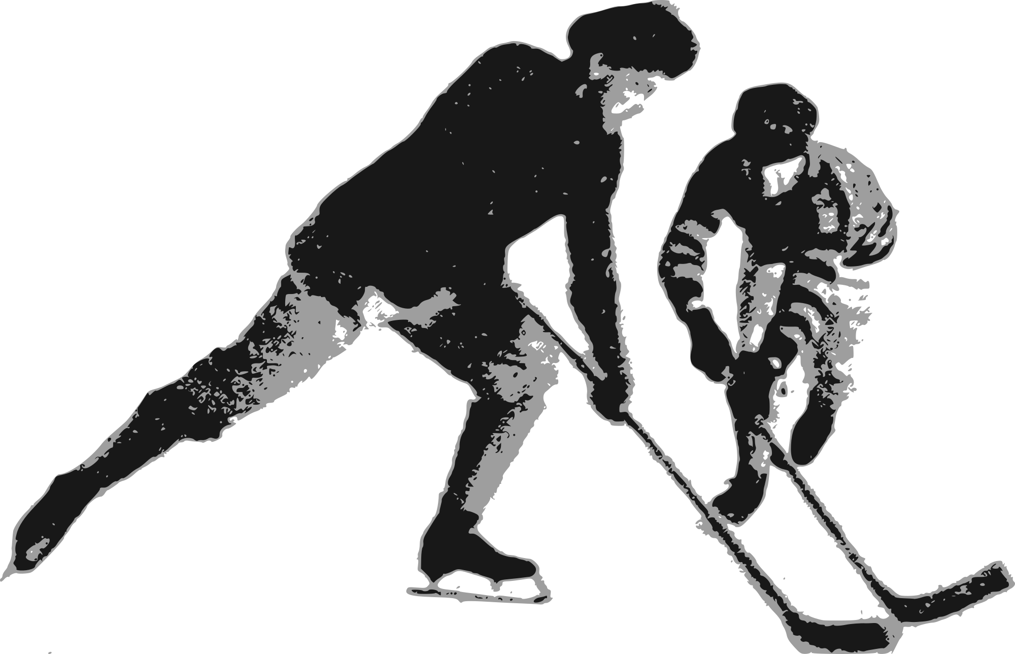 There wasn't enough ice hockey clipart images on this site, so I synthesized this one of two people playing ice hockey. (Originally it was an image of a friendly game played on a lake, but I suppose it would work for an image in an arena too?)