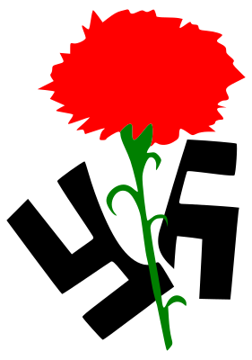 The Carnation splitting the Fascism logo.