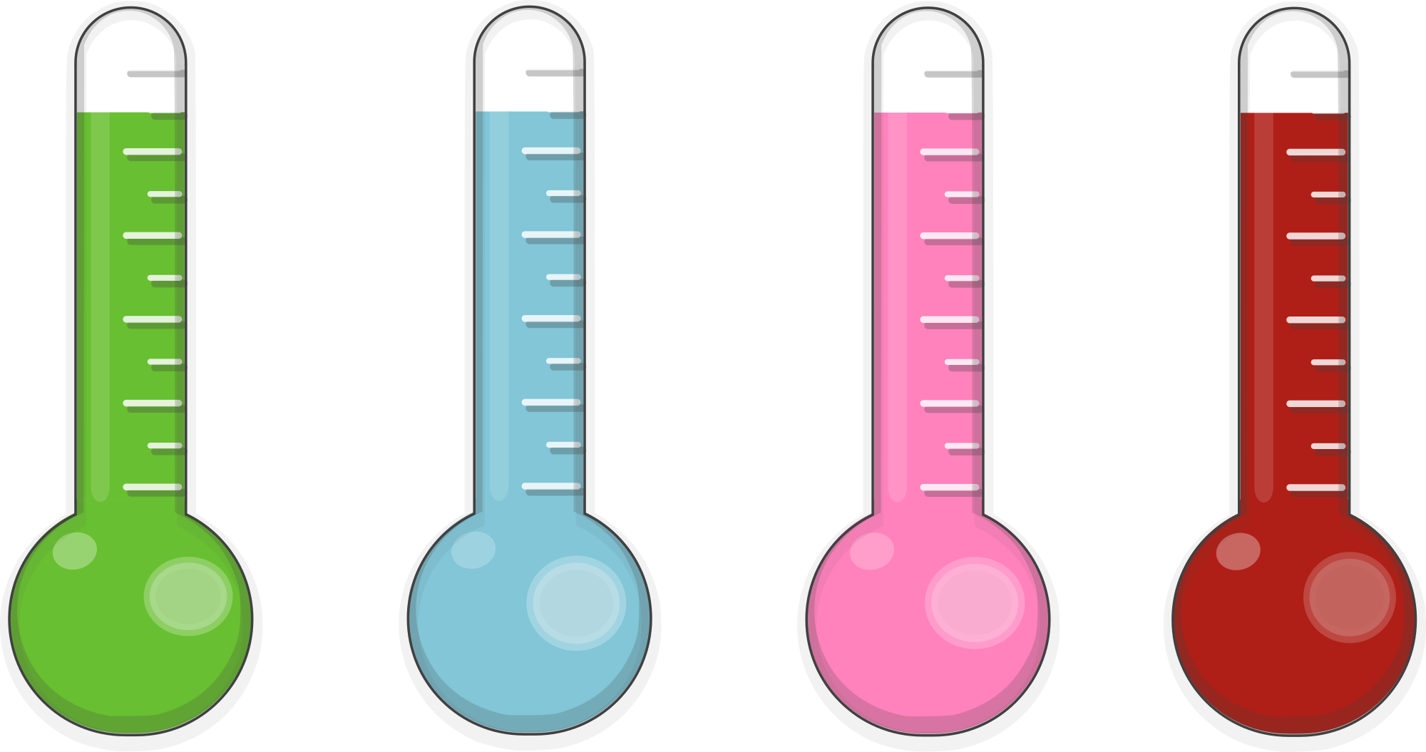Four shiny thermometers.