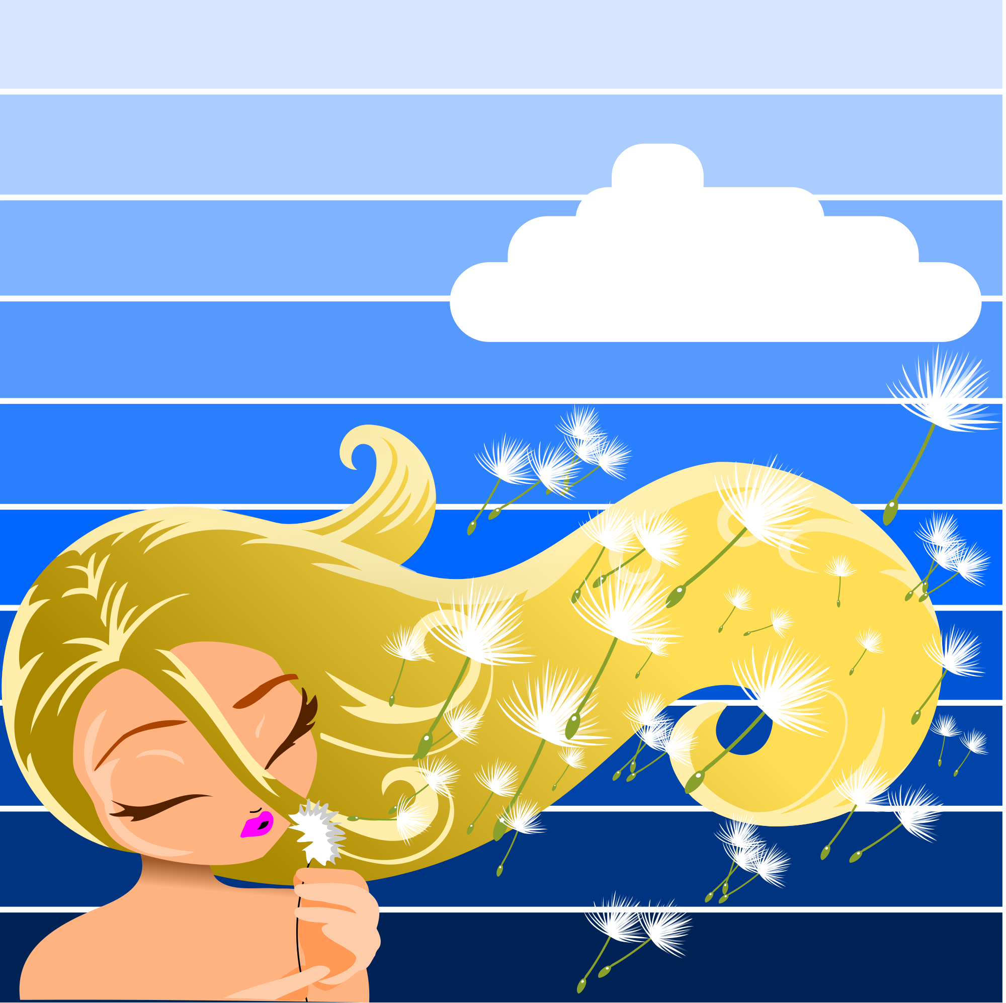 - cartoon cloud color dandelion girl manga people - cartoon - cute female woman lady blonde breeze wind blow