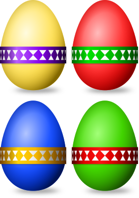 Some simple coloured eggs with banderoles. Fitting for easter purposes.