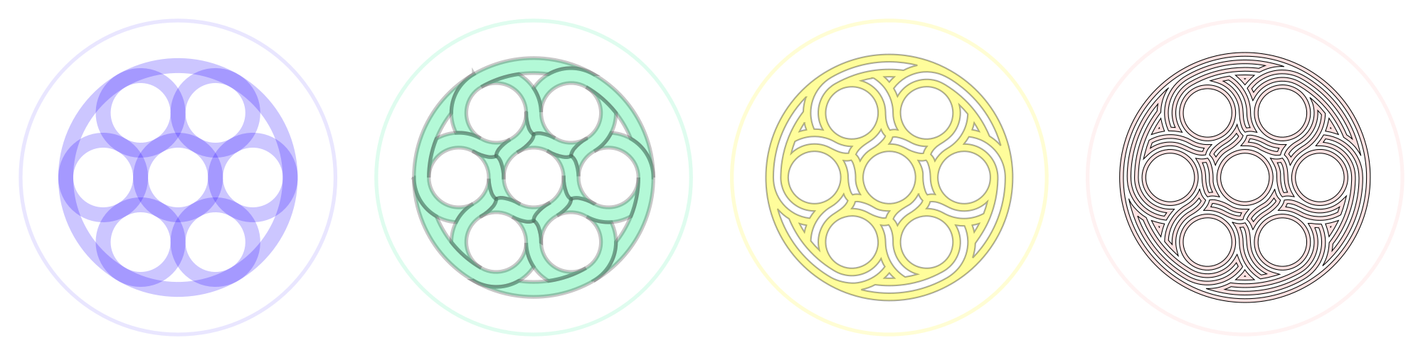 - Intricated circles with progressive path conversions - not so perfect as it seems : little errors become particularly visible with successive conversions.