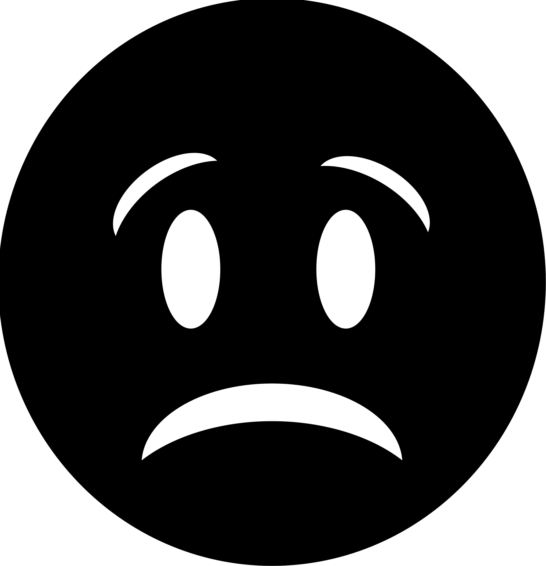 A frowning face in black and white.