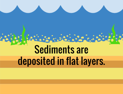 Schematic view on how sediments are desposited in flat layers.