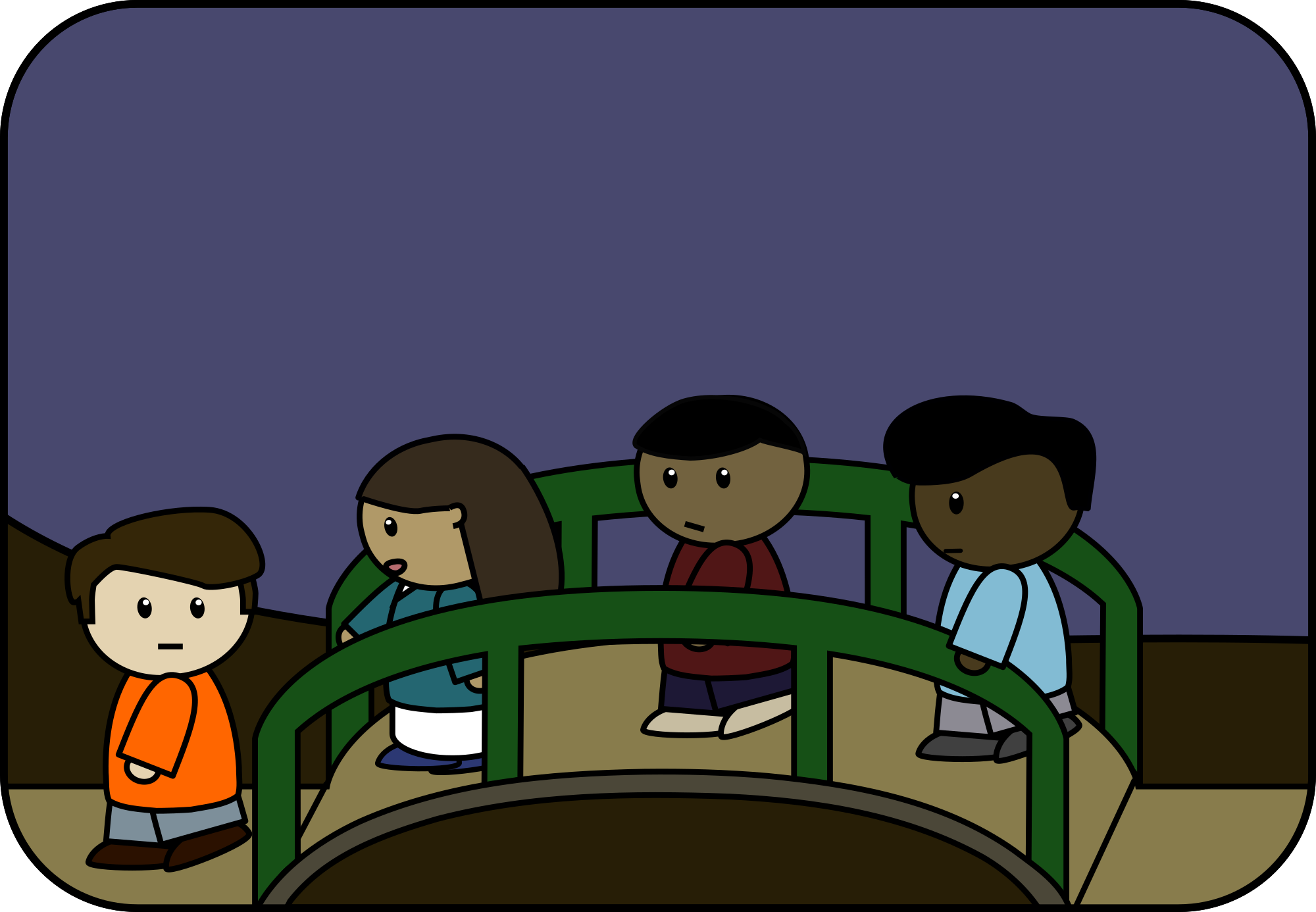 - bridge cross crossing garden human human being man mankind path people people - cartoon - cute