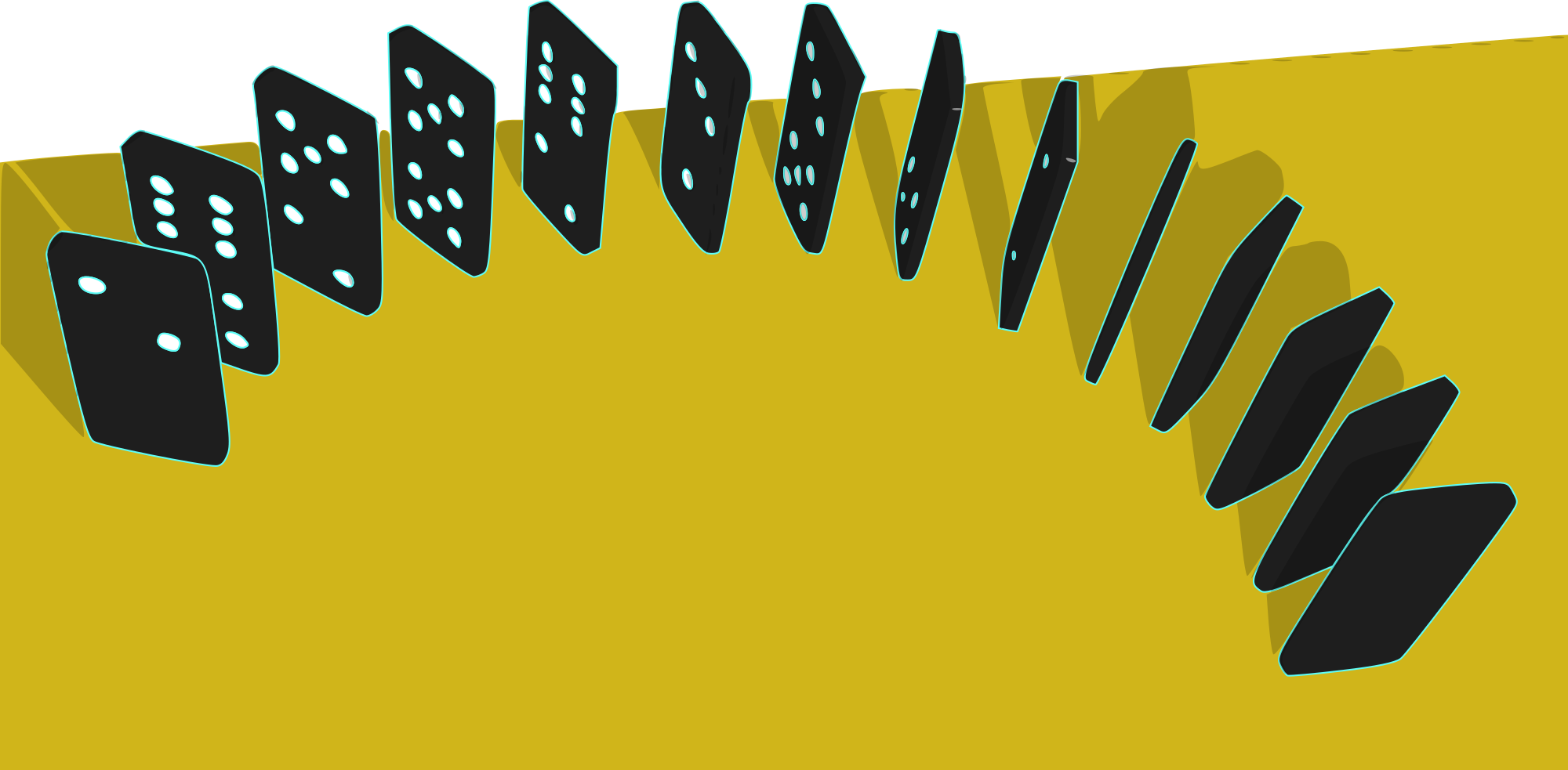 Perspective view of a sequence of dominoes standing on end. Derived from http://www.blendswap.com/blends/view/39264