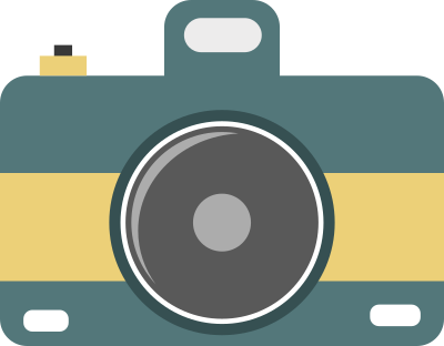 A flat icon of a camera