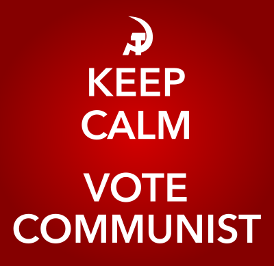 A KEEP CALM AND CARRY ON VOTE COMMUNISTS image.,