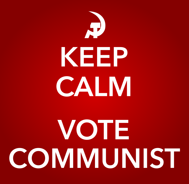 A KEEP CALM AND CARRY ON VOTE COMMUNISTS image.,