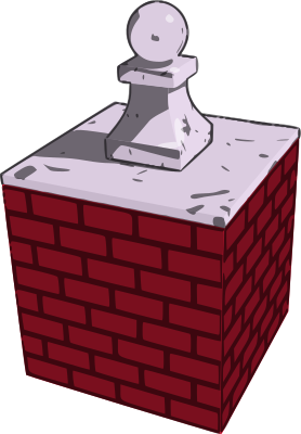 A decorative marble knob finial atop a brick gatepost
