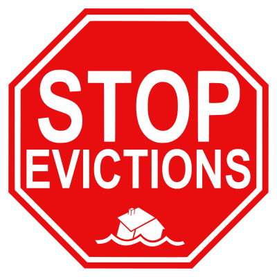 A "stop evictions" road sign.
