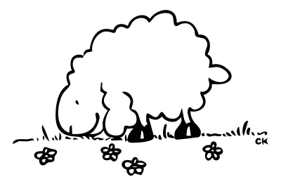 A drawing of a grazing sheep.