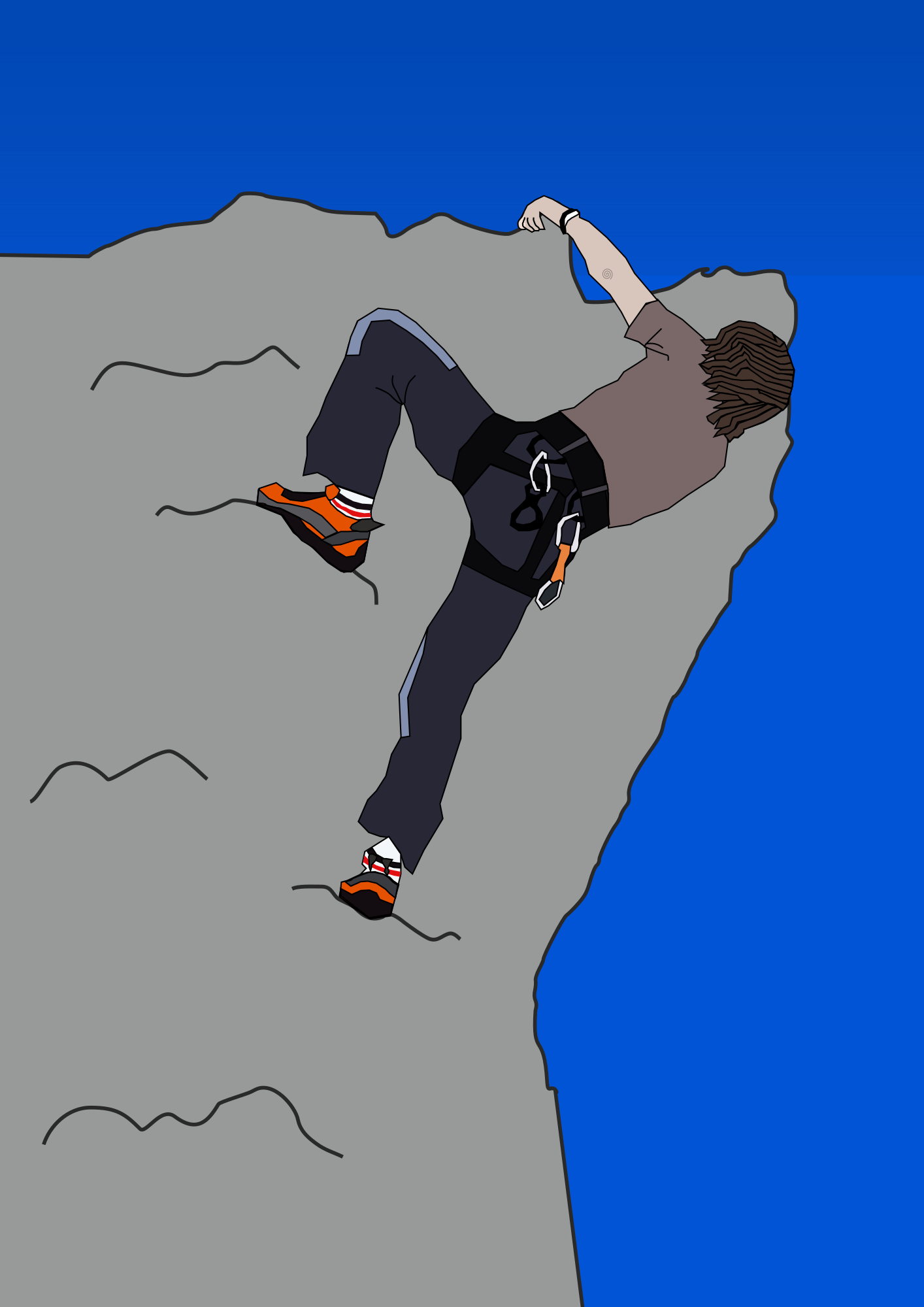 I noticed this excellent clipart image by Machovka, but I thought the digitalized rock somehow took away from the clipart experience (in my opinion, so I worked on making it completely vector clipart. It looks a bit more flat but the climber doesn't clash with the rocks now, in my opinion. Anyway, just offering this version too!