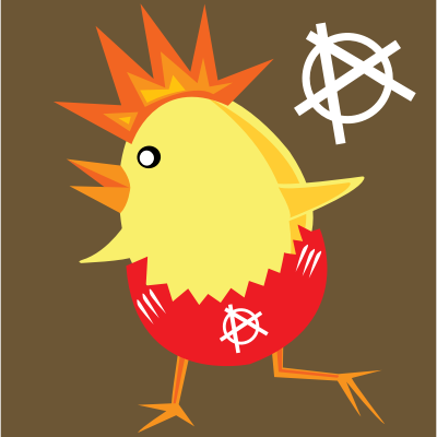 Punk rock chick running around in a shell.