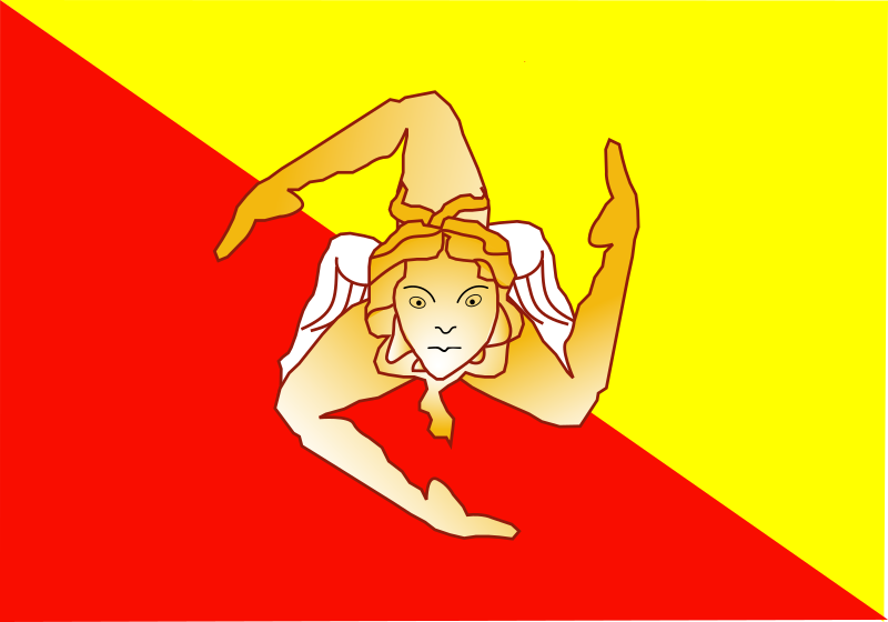 The sicilian flag with the Triskeles a mythological monster
