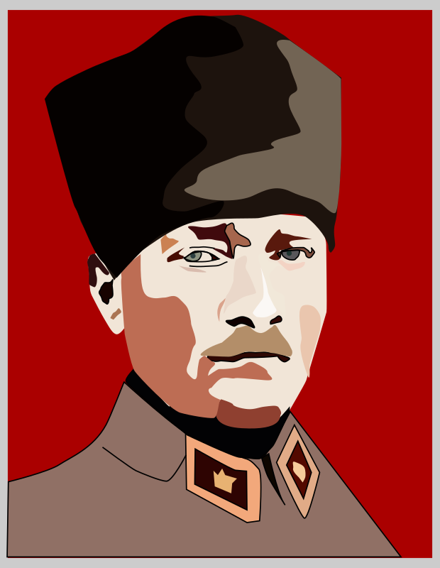 Portrait of Mustafa Kemal Ataturk; founder of Republic of Turkey, reformist statesman, first president of Turkey.