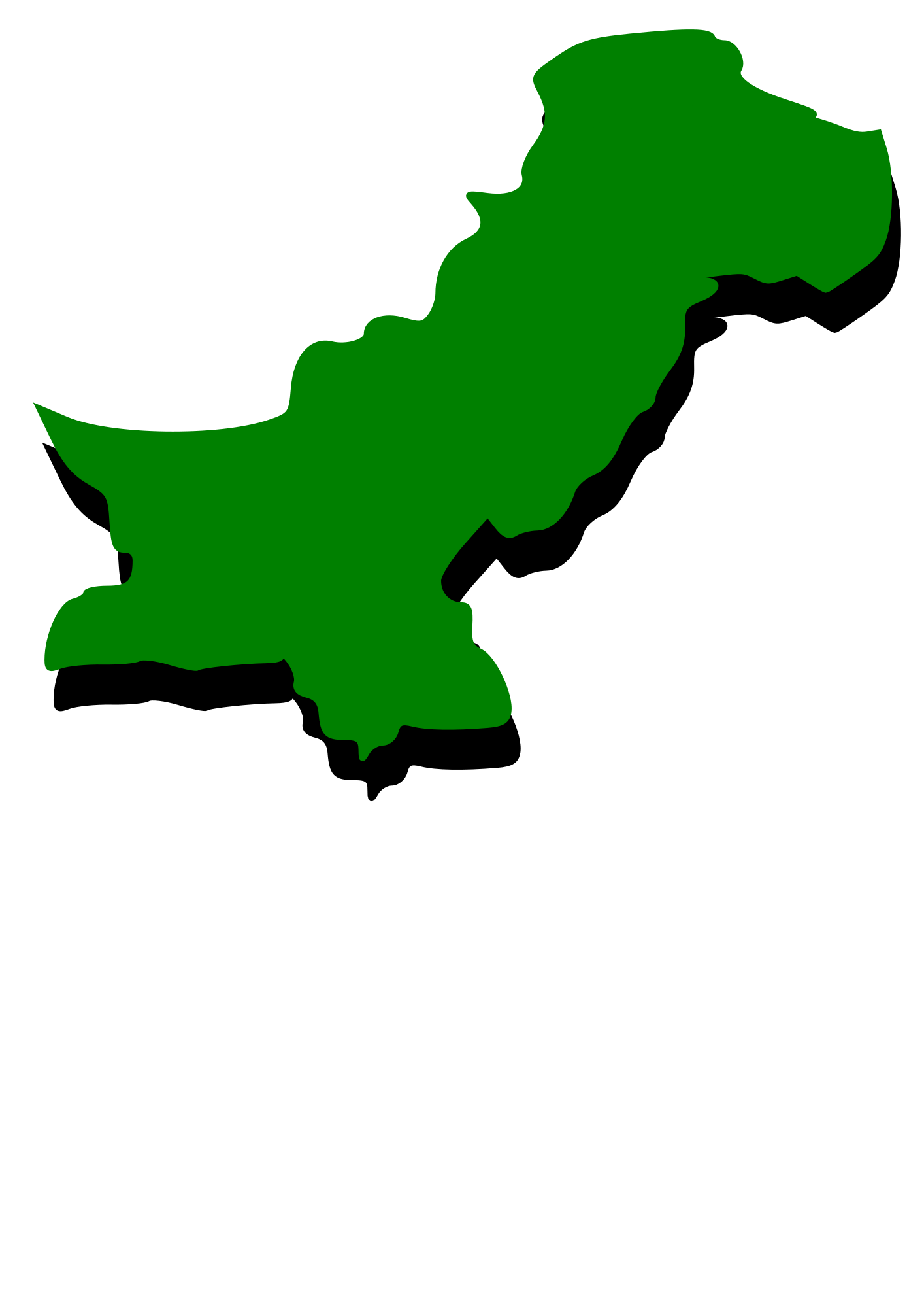 Embossed outline map of Pakistan with green fill