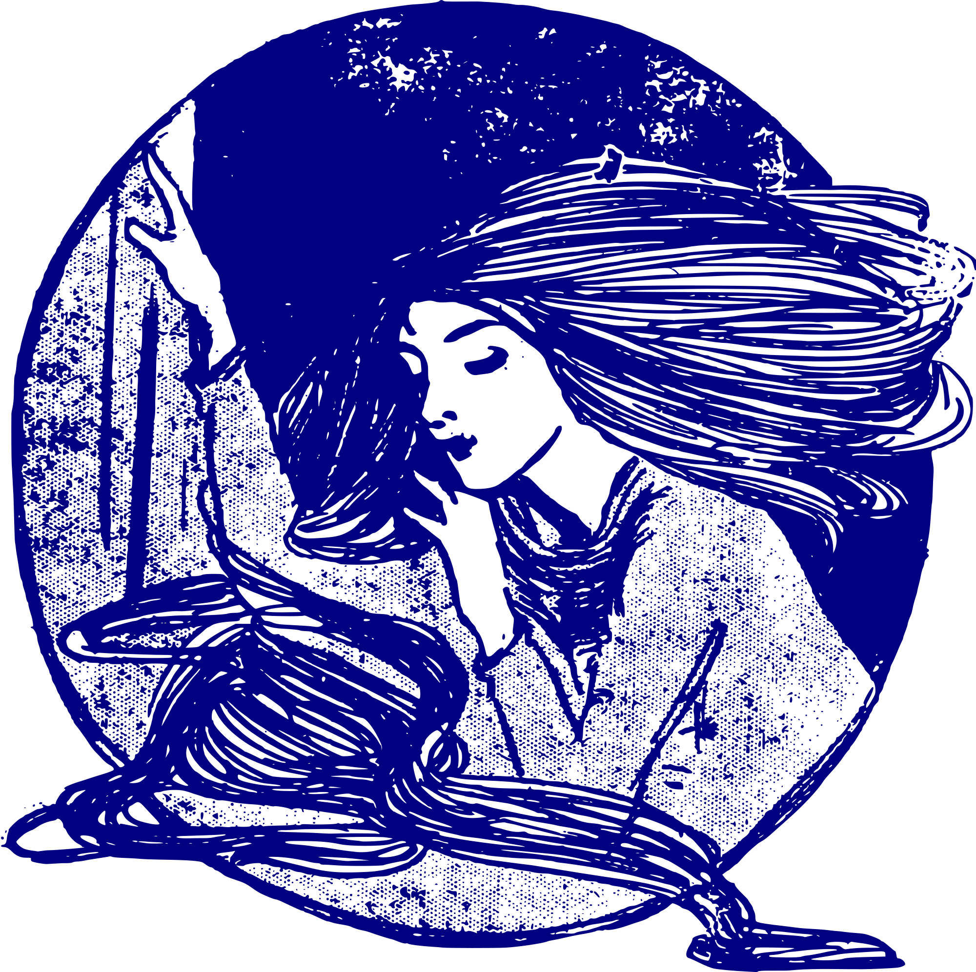This lady is thinking up a storm. Maybe she has been thinking about why her hair is so long, or maybe she is thinking about why she is clipart. I thought this looked like a stamp, and so I made it blue for some reason.