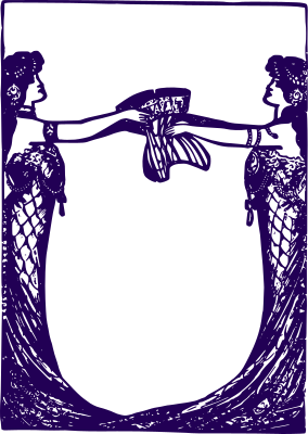 These ladies are passing a corset. It's only one though, so I'm not sure who is taking and who is giving. I'm also not sure who would use a corset lady frame, maybe that's why I made it purple, just because that makes it that much more able to catch your eye?!