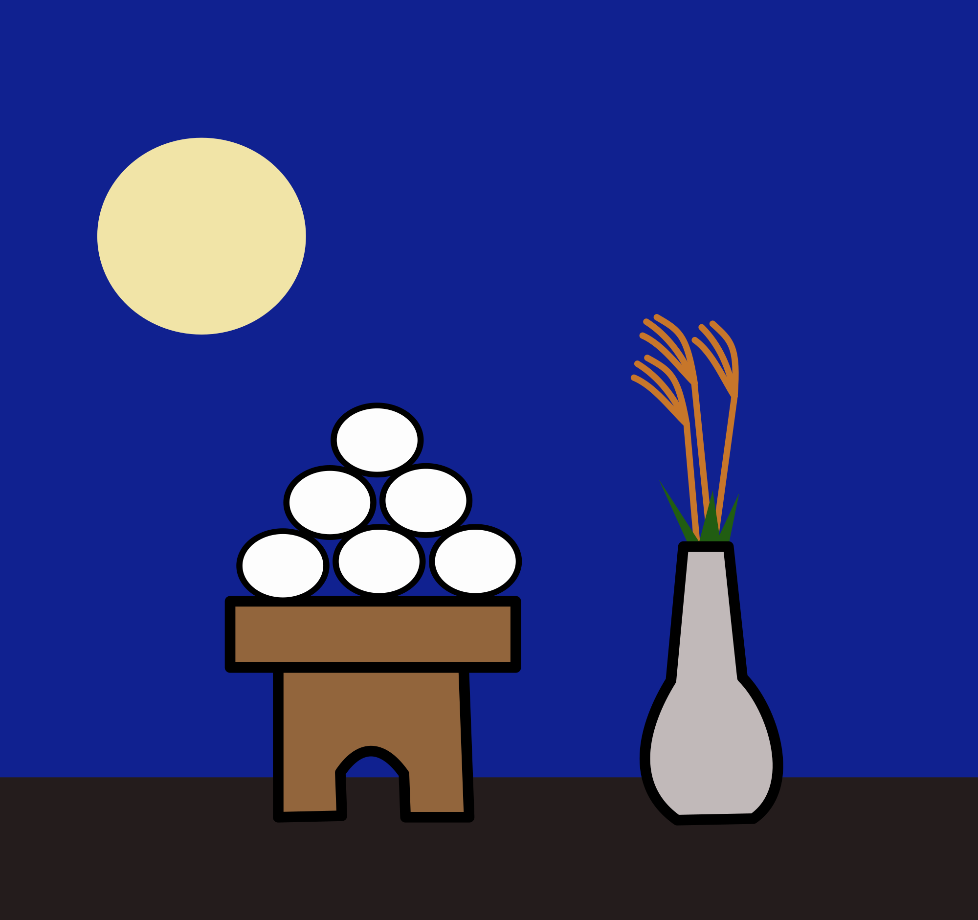In my never ending quest to fill all the missing gaps in openclipart.org clipart coverage, I'm providing a clipart image to symbolize the Japanese festival of 'moon viewing'. It's a little early, that's done in autumn, but I thought early was better than late. Symbols of this event include the 'tsukimi dango' (round circle rice dumpling) and 'susuki grass' (that's in the vase in this clipart) ... you better have your moon-viewing party soon!