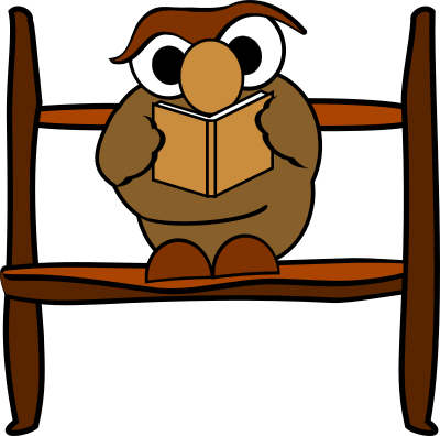 A clipart of a reading owl on a stick.