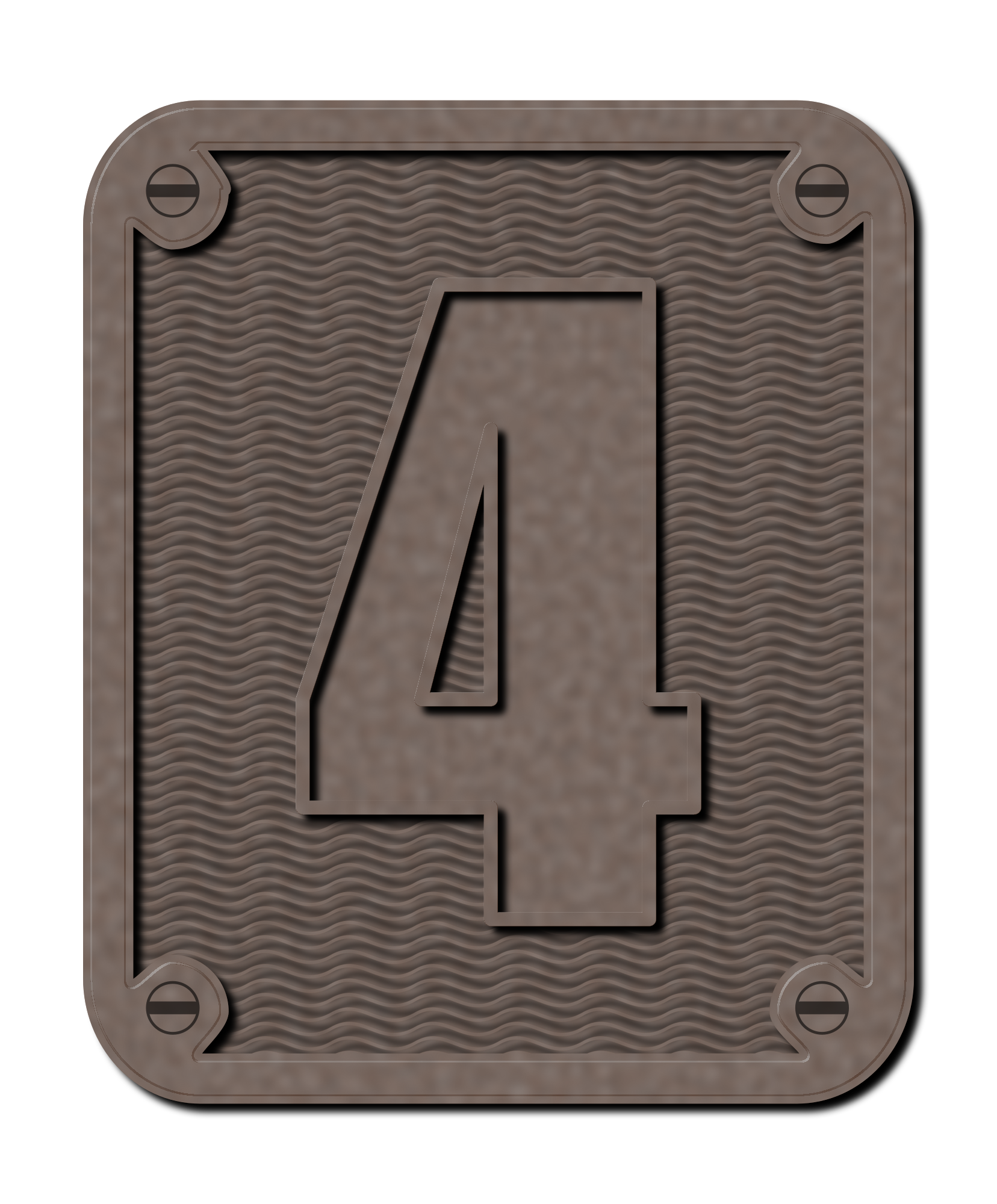 An industrial-looking metal number four on a background.