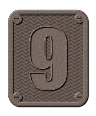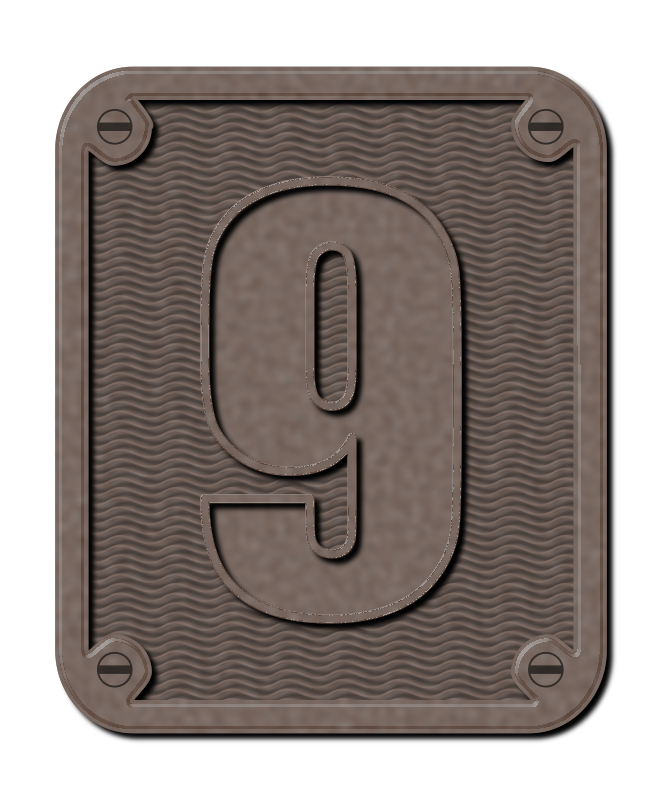 An industrial-looking metal number 9 on a background.