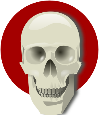 A human skull over a red circle.
