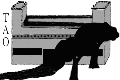 Buddhist Monastery with two trees in the foreground and a way to the entrance. On the top is a ground where the monks can make their exercises. The word TAO means way.