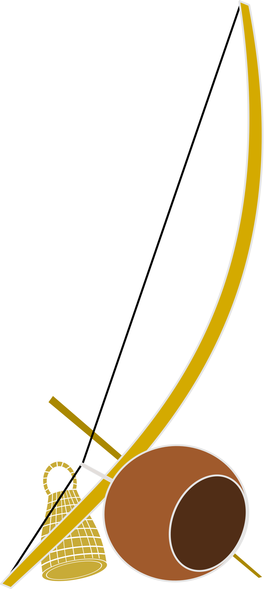 Desenho em vetor de um berimbau, caxixi, aquidavi e dobão de pedra. Instrumentos usados em roda de capoeira.