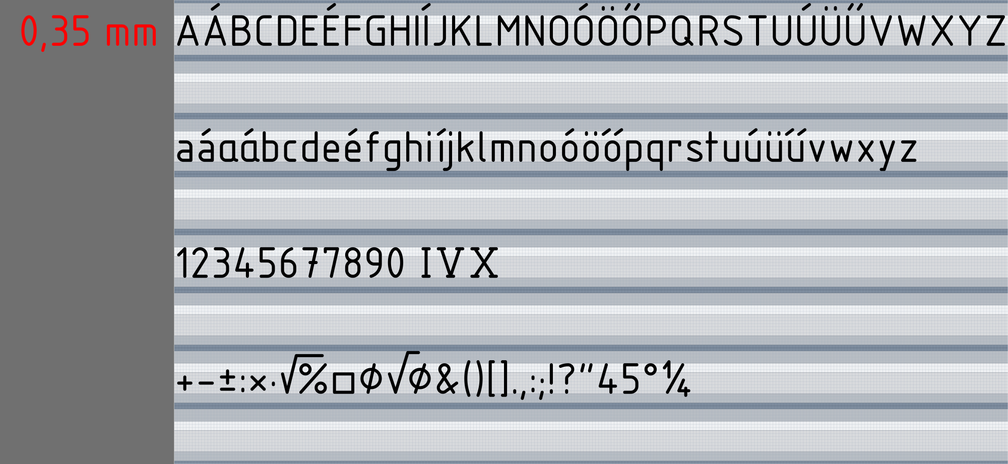 With 0,35 mm stroke weight.