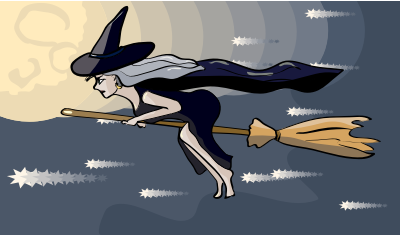 cartoon witch flying on a broom