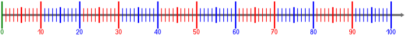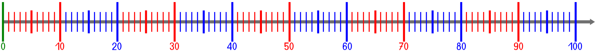Natural number line from 0 to 100 with numbers.