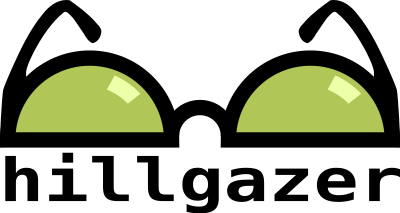 A simplistic glasses logo, where the glasses *are* the hills. Done for Hillgazer.