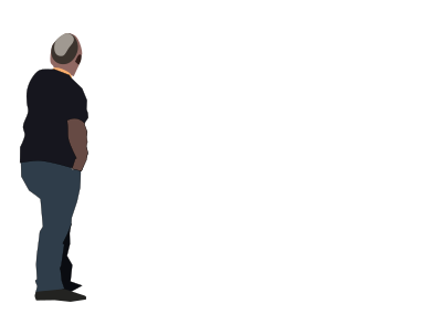 Standing, middle aged man, total from back.
