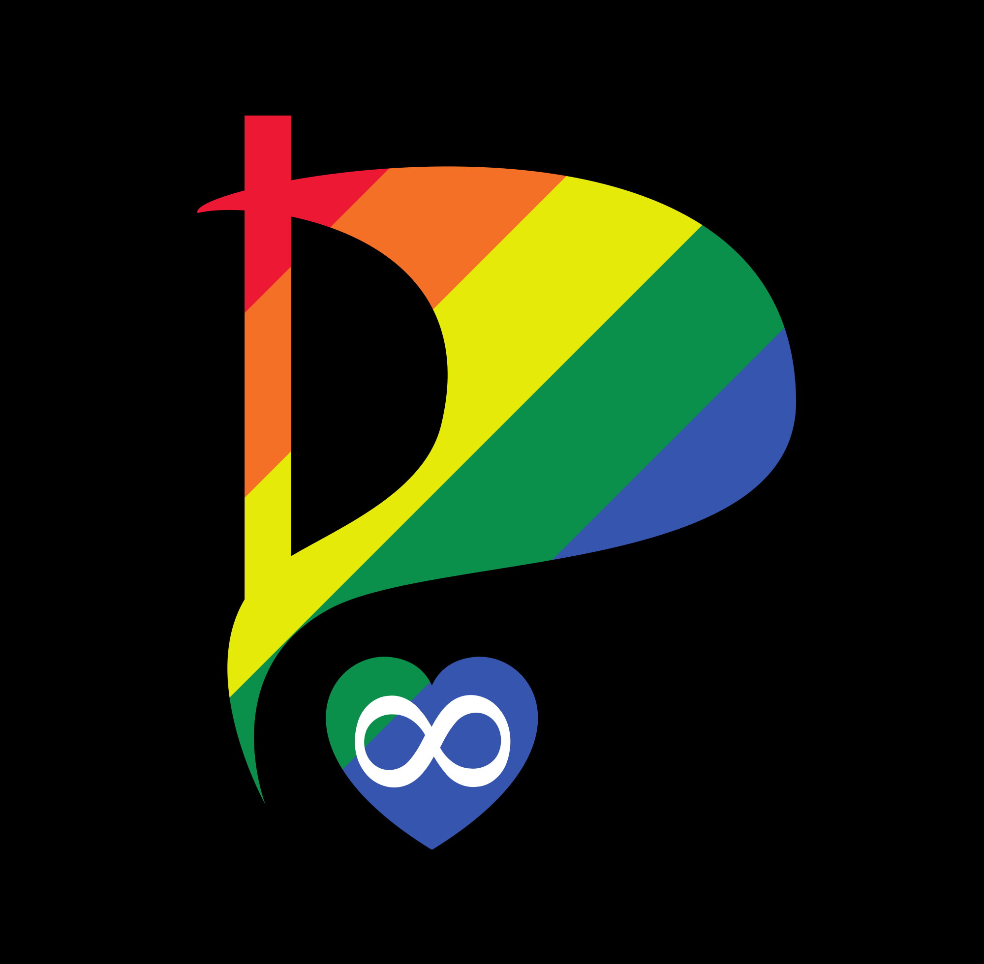 A pirate party flag but done with gay pride colors.