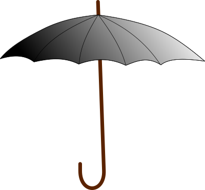 An umbrella knocked up in a couple of moments as a demo of inkscape .46 Has a grouped pair of canopy shapes that provide the gradient effect while masking the stick.