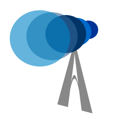 Blue telescope on stand.