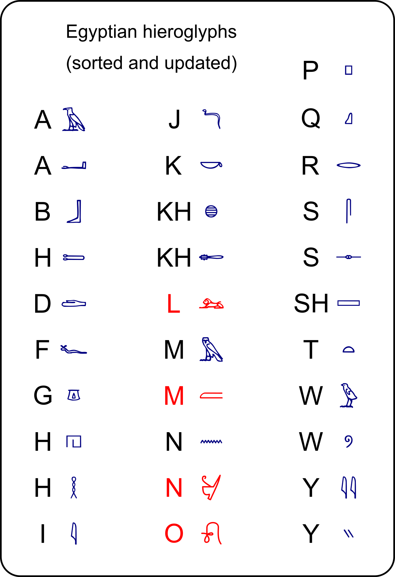 Egyptian alphabet at English alphabetical order.