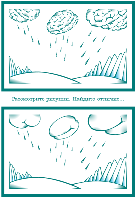 It's raining from brains and buttocks.... with Cyrillic text saying: Look at the drawings: Find the difference.