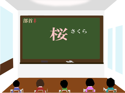 a kanji which is read as "sakura" and means "cherry tree" and includes a bushu "ki or kihen" which means "tree or wood"
